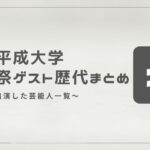 帝京平成大学の学園祭は、キャンパスごとに公式サイトや発信元が分かれているため、本記事では大学公式メディアや各学園祭の公式ページなどで確認できたゲストのみをまとめています。